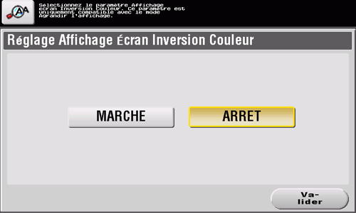 Tapez sur [Accessibilité] - [Réglage Inversion Couleur Affichage Écran], puis sélectionnez s'il faut inverser la couleur d'affichage de l'écran (par défaut : [NON]).