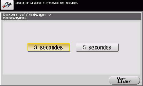 Changer la durée d'affichage d'un message à l'Écran tactile.