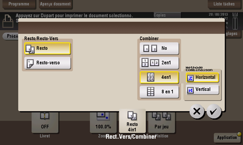 Si [4en1] ou [8en1] est sélectionné, vous pouvez réglez l'orientation de la page combinée sur [Horizontal] ou [Vertical].