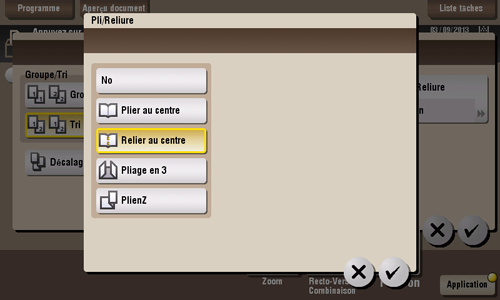 Agrafe et éjecte une feuille imprimée en la pliant en deux.
