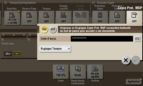 [Code d'accès] | Entrez le mot de passe pour interdire la copie. | |