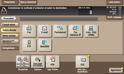 Entrez les informations de destinataire conformément au système de transmission que vous utilisez.