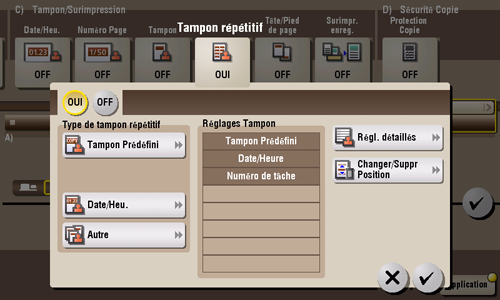 [OUI]/[OFF] | Sélectionnez [OUI] pour imprimer un tampon de manière répétitive. |