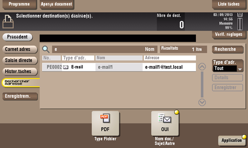 Tapez sur [Recherche] pour afficher les résultats de la recherche. Sélectionnez une destination sur la liste.