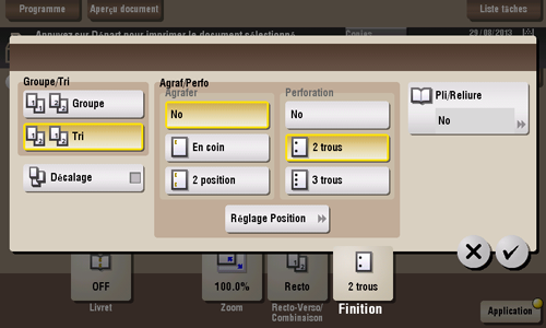 Sélectionnez les positions de reliure en cas de perforation de feuilles.