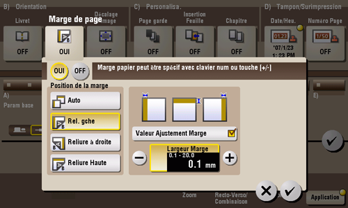 • [Rel. gche] : sélectionnez cette option en cas de réglage de la position de reliure sur la gauche du papier.