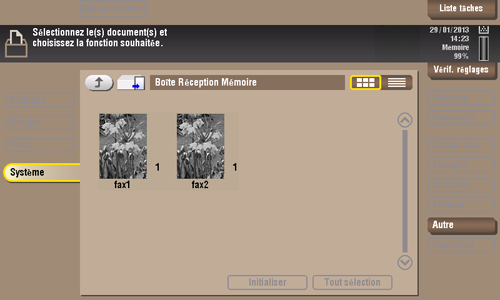 Comme les fax reçus sont forcément archivés dans cette boîte, vous pouvez n'imprimer que les fax requis et réduisez par conséquent les frais d'impression totaux. De même, cela empêche le détournement ou la perte de fax importants et cela augmente donc la sécurité.