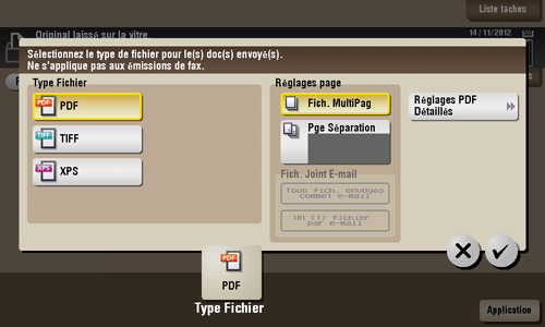[Réglages PDF Détaillés] | Si [PDF] est sélectionné comme format de fichier, vous pouvez configurer les réglages de l'option PDF.