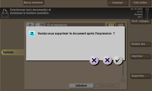 [Non] (croix à droite) | Imprime le fichier mais le conserve dans la boîte utilisateur. |