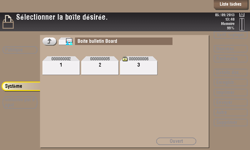 Pour accéder à un fichier dans cette boîte utilisateur, sélectionnez la boîte souhaitée, puis tapez sur [Ouvert].