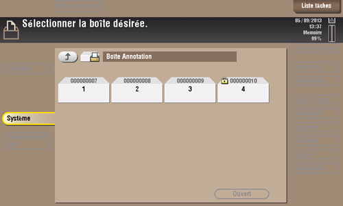 Pour accéder à un fichier dans cette boîte utilisateur, sélectionnez la boîte souhaitée, puis tapez sur [Ouvert].