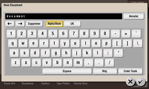 Vous pouvez attribuer un nom à un fichier à enregistrer (30 caractères max.).