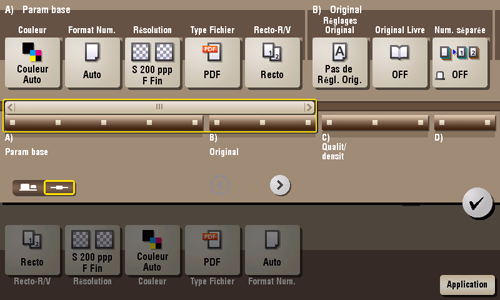 [Applications] | Définit les options de l'application pour supprimer une image d'original en dehors du cadre spécifié et pour améliorer les bords d'une image. |