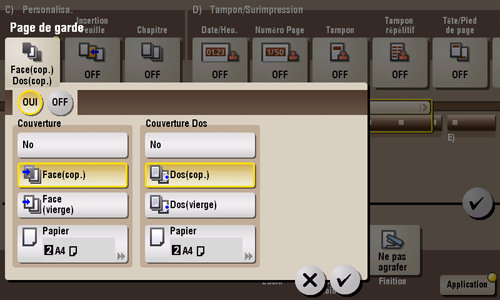 [OUI]/[OFF] | Sélectionnez [OUI] pour spécifier Page de garde. |
