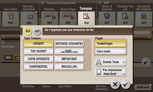 [OUI]/[OFF] | Sélectionnez [OUI] pour imprimer un tampon. |