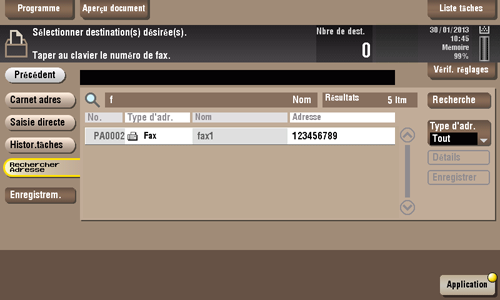 Tapez sur [Recherche] pour afficher les résultats de la recherche. Sélectionnez une destination sur la liste.
