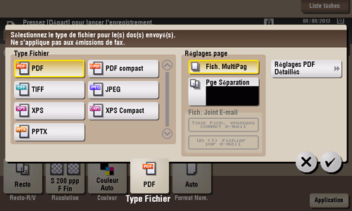 [Fich. Joint E-mail] | Vous pouvez sélectionner la méthode utilisée pour joindre un fichier à un e-mail quand [Réglages page] est réglé sur [Séparation Page].
