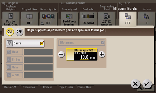 Sélectionnez [OUI] pour spécifier Effacem Bords.