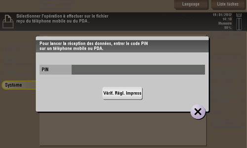 La saisie du code PIN d'un périphérique Bluetooth, permet d'imprimer un fichier stocké sur ce périphérique.