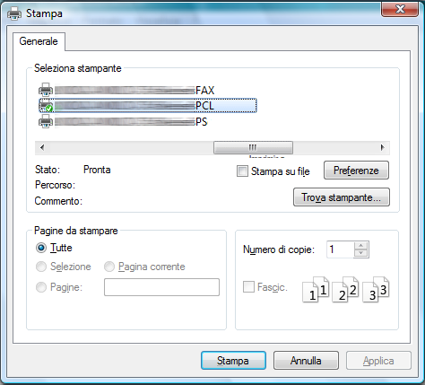 La finestra di dialogo [Stampa] differisce a seconda del software applicativo.