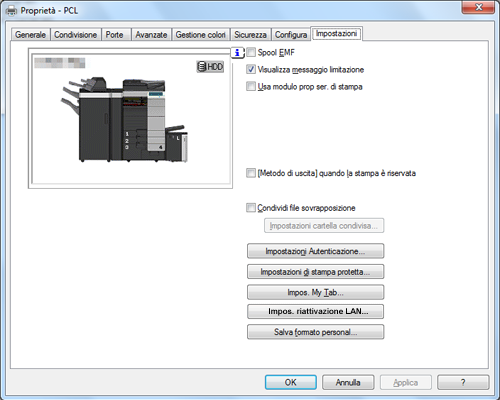 [Spool EMF] | Selezionare questa casella di controllo quando lo spooling (EMF) del metafile è necessario nel proprio ambiente di sistema. |