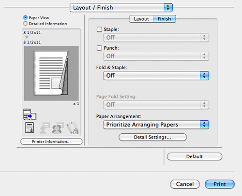 In [Layout / Finish], è possibile configurare le impostazioni sul layout o finitura della stampa. È possibile combinare pagine o regolare le posizioni di stampa.