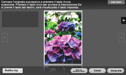 Dopo avere scansionato tutti gli originali, selezionare [Invia ora] oppure premere il tasto Avvio.