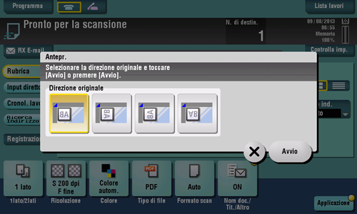 Per continuare la scansione degli originali, caricare l'originale, quindi premere [Avvia scansione].