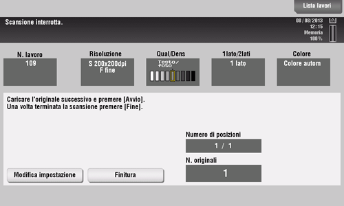 Una volta scansionati tutti gli originali, fare clic su [Finitura] e premere il tasto Avvio.