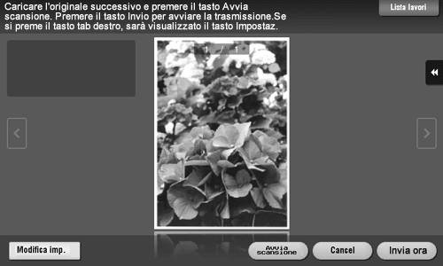 Dopo avere scansionato tutti gli originali, selezionare [Invia ora] oppure premere il tasto Avvio.