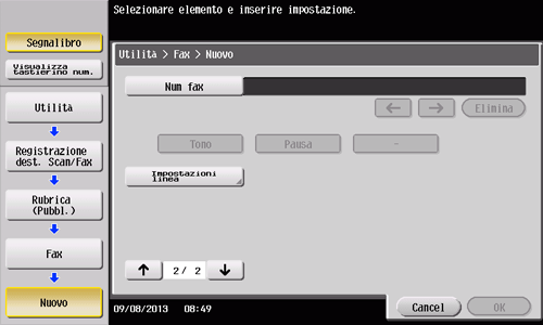 Fare clic su [Utilità] - [Registraz. destinaz./ casella] - [Registrazione dest. Scan/Fax] - [Rubrica (Pubbl.)] - [Fax] - [Nuovo].