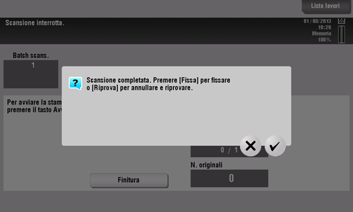 6. Una volta scansionati tutti gli originali, fare clic su [Finitura] e premere il tasto Avvio.