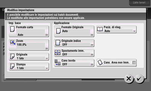 • Se lo si desidera, fare clic su [Modifica impostazione] per modificare le impostazioni di copia secondo il nuovo originale.