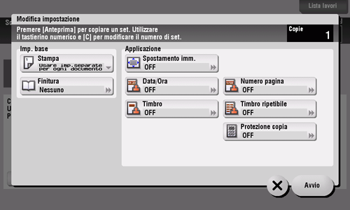6. Configurare le impostazioni di copia e premere Avvio.
