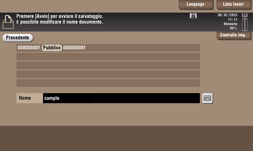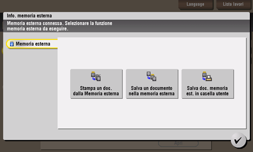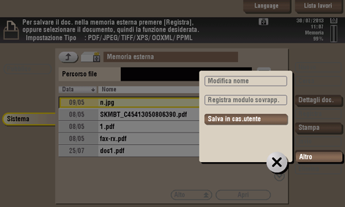 È inoltre possibile stampare i file selezionando il modo casella utente e premendo [Sistema] - [Memoria esterna].
