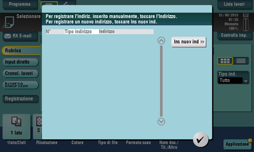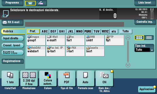 È possibile registrare fino a 2000 rubriche. I tipi di destinazione che possono essere registrati sono: indirizzo e-mail, nome di computer, ecc., a seconda della modalità di trasmissione.
