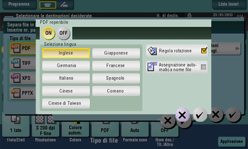 [ON]/[OFF] | Selezionare [ON] per creare un file PDF reperibile. |