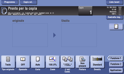 Se le impostazioni dei tasti funzione vengono modificate selezionando il [Tasto display funzione (copia/stampa)], le funzioni che non vengono associate ai tasti dal [Tasto Funzione 1] al [Tasto Funzione 14] vengono visualizzate in [Applicazione].