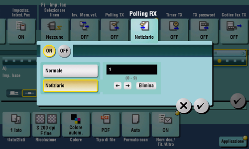 [ON]/[OFF] | Selezionare [ON] per specificare Polling RX. |