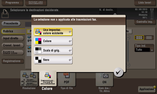 Consente di inviare un file secondo lo stesso modo colore utilizzato durante l'archiviazione.