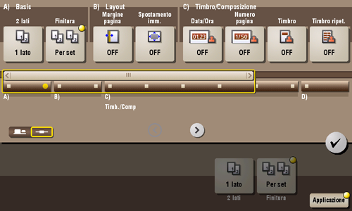 [Timb./Comp] | Aggiunge il numero di pagina e il timbro a ogni foglio di stampa. |