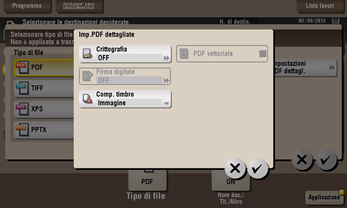 Se il tipo di file è impostato su [PDF] o [PDF compatto], è possibile impostare le opzioni PDF.
