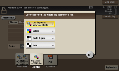 Selezionare il modo colore per il salvataggio dei file nella memoria esterna.