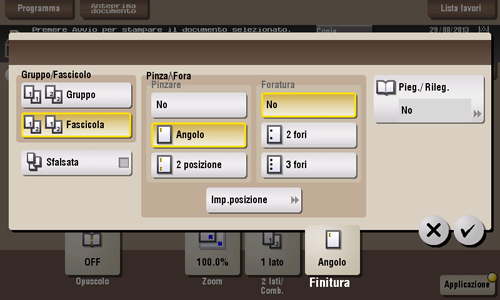 Ogni set di fogli stampati è pinzato in un angolo (in alto a sx o in alto a dx), prima di essere espulso.