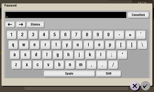 Questa schermata è visualizzata quando [Impostazioni Amministratore] - [Impostazioni sicurezza] - [Dettagli sicurezza] - [Funzioni vietate se autenticazione fallita] è impostato su [Modo 2].