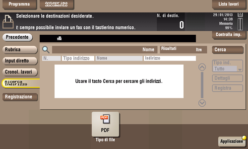 Premere [Cerca] per visualizzare i risultati di ricerca. Selezionare una destinazione nell'elenco.