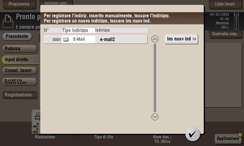Registrare un nuovo indirizzo nella rubrica. Per informazioni dettagliate sulla modalità di registrazione, fare riferimento a Qui.