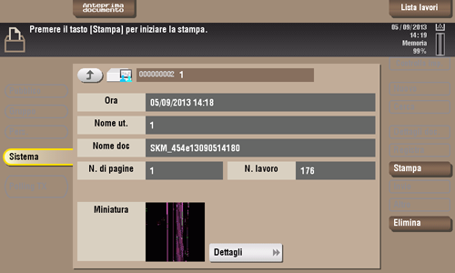 [Dettagli doc.] | Facendo clic su [Dettagli], oppure su un'immagine in miniatura, si può vedere l'anteprima immagine del file.