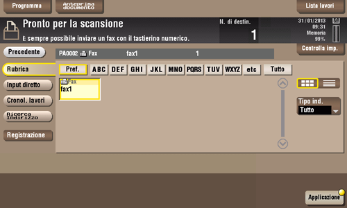 Nella Rubrica, selezionare una destinazione registrata in questa macchina. È possibile trasmettere file selezionando destinazioni multiple.