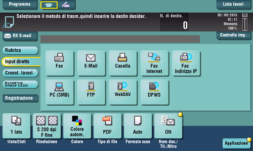 [E‑Mail] | Inserire un indirizzo e-mail di destinazione quando i dati dell'originale scansionato sono inviati come allegato e-mail. |